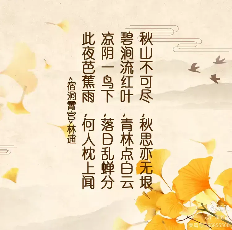 诗词之美,流光溢彩,而其中沁人心脾、引人低回久远者,莫过于那浸透着秋光月色与万缕情思的篇章。南国花城的秋,百花依然娇艳,全无萧瑟肃杀之感,通常只有到了霜降前后,公园和珠江边偶见黄叶、落英,才令人感觉到些许秋的意象。我对秋之诗词的吟读,往往要进入那些年北京定居时的感受。秋,仿佛造化为诗人特意铺展的画卷,也为万千心绪提供了最相宜的容器。秋景之斑斓肃穆,秋思之绵长深邃,一经入诗,便定格为千年不朽的吟唱,每每读之,心头便如秋水般漾开层层涟漪。